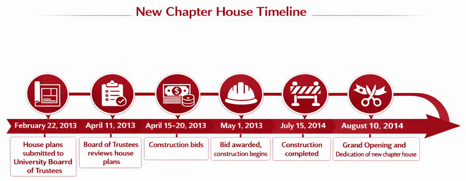 ![]() May 2013 ![]() The new house sits on a prominent place on University Boulevard. We have 40 bedrooms, compared to 23 in the old house.